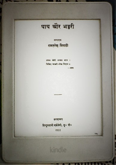 फिलहाल आप इण्टर्नेट आर्काइव के उक्त लिंक से रामनरेश त्रिपाठी जी की सन 1931 की पुस्तक को डाउनलोड कर घाघ और भड्डरी के कवित्त का आनंद ले सकते हैं। मैंने तो पुस्तक को किण्डल पर सहेज लिया है। और किंडल को लैंडस्केप मोड में पढ़ने पर किताब के अक्षर अधिक मोटे और सुपाठ्य दिखते हैं! :lol: