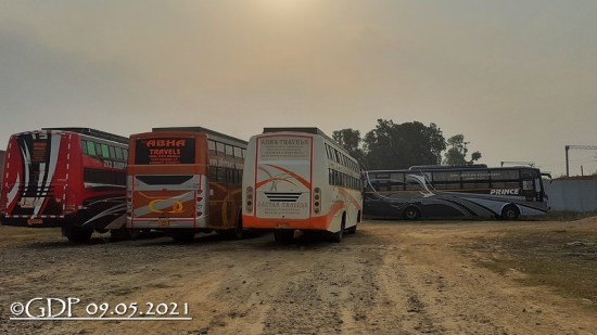 कटका स्टेशन के दूसरी ओर चार बसें खड़ी हैं। उनको उनके मालिक बनारस से नागपूर, अमरावती, इंदौर आदि के लिये चलाते थे। सारा यातायात ठप है तो बसों को शहर में खड़ा करने की जगह नहीं होने से यहां उन्हें स्टेबल कर दिया है।