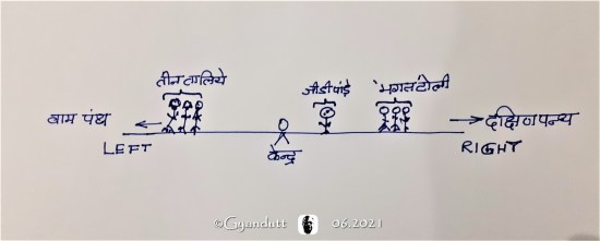 बेतरतीब बिखरे (मेरे इलाके की अवधी में कहें तो झोंटा बगराये) बाल और उनमें से दो आदमी खिचड़ी दाढ़ी वाले, तीसरा एक सुटका सा (पतला दुबला) नौजवान – कुल मिला कर उनका रंग-ढंग मुझे सेण्टर से वाम की ओर पाये जाने वाले तथाकथित मार्क्सवादियों जैसा लगा – या उनसे थोड़ा ही कम। मैं अपने को सेण्टर के दक्षिण की ओर चिन्हित करता हूं। आजकल भृकुटि के बीच चंदन का टीका नहीं लगाता, पर कभी लगाता था और अब भी कोई लगा दे, तो मुझे अच्छा ही लगता है। मेरे से कुछ ही और दक्षिण में उन लोगों का टोला है, जिन्हे ट्विटर पर ‘भगत’ की संज्ञा दी जाती है।