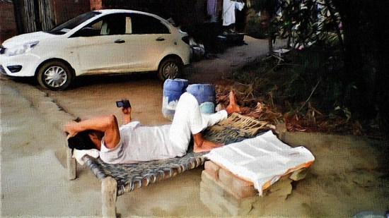 जून के प्रारम्भ के दिन थे। कोरोना संक्रमण का दूसरा वेव थोड़ा थमा था। मैंने साइकिल ले कर दस किलोमीटर तक घूमना प्रारम्भ किया था। तब वह उमरहाँ गांव में दिखा था। एक पान गुटखा की गुमटी के पास खटिया बिछा कर लेटे हुये जियो के फीचर फोन पर कोई न्यूज चैनल देखते सुनते हुये।