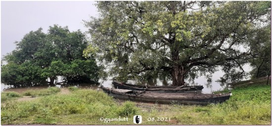 मैं एक दो दिन में बाढ़ देखने जाता हूं। बाढ़ मापने के दो गंगा-घाट हैं मेरे पास – द्वारिकापुर और कोलाहलपुर। द्वारिकापुर सवर्णों का घाट है और कोलाहलपुर अवर्णों का। दोनो के अपने अलग मिजाज हैं। द्वारिकापुर में पीपल का एक विशालकाय वृक्ष है। एक पाकड़ भी है जिसके नीचे की पत्थर की बैंच पर बैठ कर चौधरी टाइप लोग अपनी बालू की नावों का ट्रेक्टरों में ट्रांस-शिपमेण्ट सुपरवाइज किया करते थे। अब वहां वह बेंच जलमग्न हो गयी है। किनारे लंगर डाली मोटर लगी बड़ी नावें जिनपर बालू ढुलाई होती थी, अब बाढ़ के साथ साथ अपना स्थान बदल रही हैं। उन्हें गंगा की धारा से बचाने का यत्न करते हैं उसके मालिक लोग।