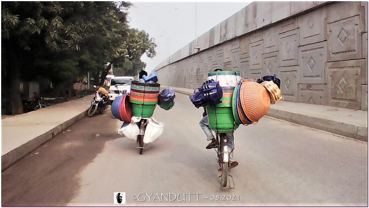 आते जाते मुझे प्लास्टिक का सामान साइकिल पर लादे बहुत से फेरीवाले दिखते हैं। उनके चित्र भी साइकिल चलाते हुये खींच लेता हूं।