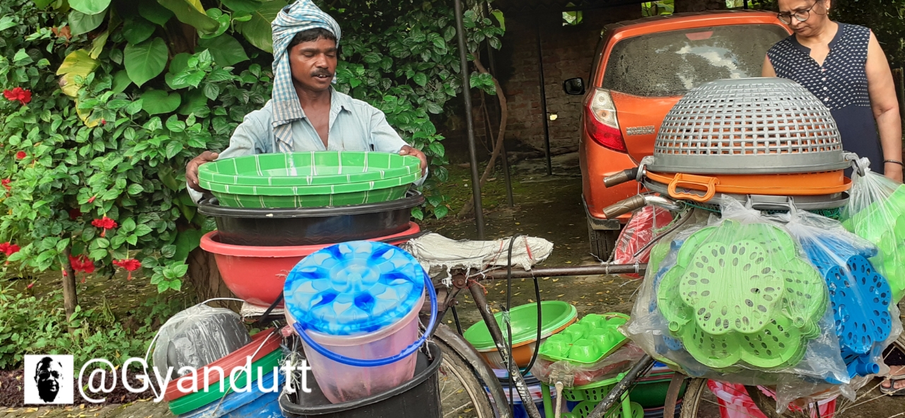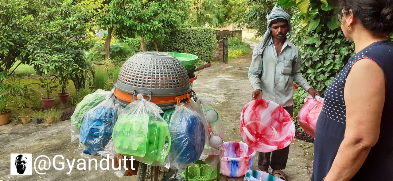 मुझे यह स्पष्ट हो गया कि इस तरह के कई समूह इस इलाके में प्लास्टिक की डेली-यूज की सस्ती वस्तुओं को बेचने के लगे हैं। वे मोबाइल, ऑनलाइन और मोटर साइकिल तथा हाईवे जैसी सुविधाओं का सही सही दोहन कर ग्रामीण जनता को सुविधा भी दे रहे हैं और अपना पेट भी पाल रहे हैं।