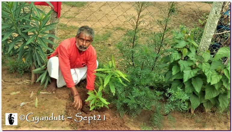आज सवेरे उन्होने वहां नर्सरी/रोपनी में रुद्राक्ष का पौधा लगाया। रुद्राक्ष का पौधा उस व्यक्ति से रोपवाया जाता है, जो सरल हो, संत हो और उसके मन में किसी के प्रति दुर्भावना न हो। प्रवीण दुबे जी ने सम्भवत: उनके ये गुण देख कर ही उनसे कहा था कि वे रुद्राक्ष का रोपण करें।