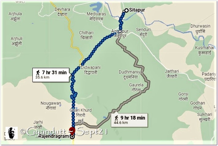 पौधा रोपण के बाद प्रेमसागर आज सवेरे आठ बजे वहां से राजेंद्रग्राम के लिये निकल पड़े। यह रास्ता करीब 35 किमी का है। बीच में किसी स्थान पर रास्ता अवरुद्ध हो गया है। “राजेंद्रग्राम से वन विभाग के त्रिपाठी जी ने फोन कर बताया है कि उस स्थान पर एस्कोर्ट कर अवरोध पार करा देंगे” – ऐसा प्रेमसागर जी ने सूचित किया। उन्होने बताया कि सामने एक चाय की दुकान है जहां वे चाय के लिये रुके हैं। जगह का नाम बताया जमुड़ी। उन्हें तब सीतापुर से निकले घण्टा-डेढ़ घण्टा हो गया था।