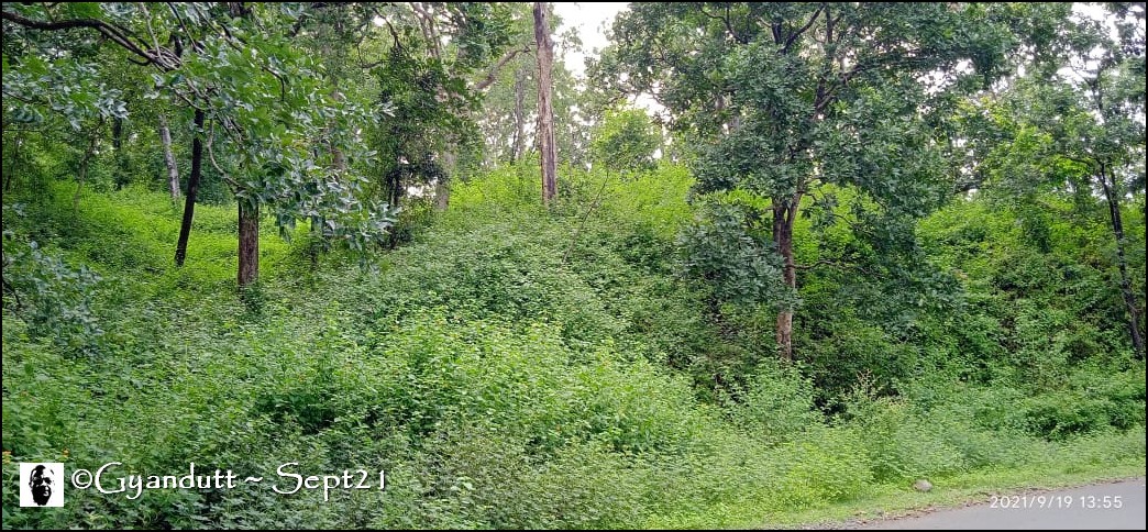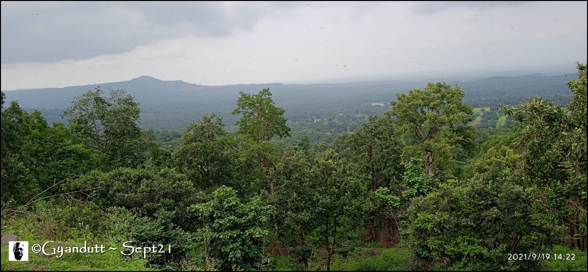 पहाड़ और जंगल – दोनो अभूतपूर्व हैं। प्रवीण दुबे जी बताते हैं कि ये जंगल शाल-वन हैं। सागौन की तो प्रकृति होती है कि वह किसी अन्य प्रकार के वृक्ष को पनपने नहीं देता, पर शाल अपने साथ बाकी सभी प्रकार के वृक्षों-वनस्पति को सहअस्तित्व में साथ लिये चलता है – पूरी बायोडाईवर्सिटी के साथ। इस जंगल में बहुत वैविध्य है। और जंगल के बीच में रहते हैं गोण जनजाति के लोग। वे बहुत सरल हैं जिन्हे प्रकृति के साथ रहना भरपूर आता है। उनके गुणसूत्र में प्रकृति है। जंगल की वनस्पतियों की उन्हें बहुत जानकारी है। उन्ही के माध्यम से चिकित्सा का उनका जो अनुभूत-ज्ञान है, उसपर बहुत कुछ शोध किया जा रहा है पर बहुत कुछ किया जाना शेष है। सामान्य शहरी आदमी उनकी इन विविधताओं की सोचता ही नहीं। वह यहां से गुजरा तो बस गुजर जाता है। अनुभव करने या रुकने का उसके पास समय ही नहीं होता।