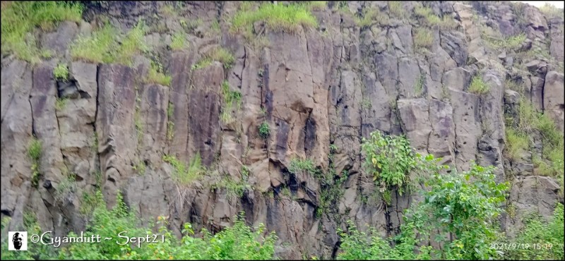जगह जगह भूस्खलन का नजारा था। छोटे बड़े पत्थर गिरे थे या गिर रहे थे। रास्ते में हनुमान जी का मंदिर मिला। पहाड़ की सबसे ऊंची जगह से लगभग दो-तीन किलोमीटर पहले। मंदिर में हनुमान जी की वृहदाकार, पंचमुखी, गेरू में लिपटी बड़ी बड़ी चमकदार आंखों वाली प्रतिमा थी। इस मंदिर के दोनो ओर ऊपर से अतिवृष्टि का जल वेग से ऐसे गिरा था कि अपने साथ पहाड़ की कई चट्टाने और मिट्टी धसका कर नीचे ले आया। यह चमत्कार ही था कि मंदिर बच रहा। मंदिर के आसपास तीन जगह सड़क पानी के तेज बहाव से क्षतिग्रस्त हो गयी। “मोटा मोटी एक महीने से यह भूस्खलन हो रहा है। तभी से सड़क रिपेयर का भी काम चल रहा है। सड़क बनती थी और फिर टूट जाती थी”।