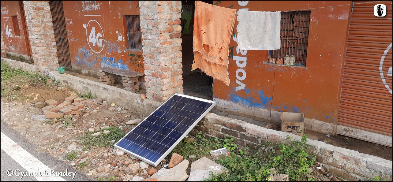 मुझे भी आगे निकलने की जल्दी थी और प्रमोद को भी निपटान के लिये पास की झाड़ियों की ओर जाने की जल्दी थी। उसने मेरे सामने अपना सोलर पैनल दुकान में रखा और शटर गिराया। हाथ में एक पानी की प्लास्टिक की बोतल थाम वह एक ओर निकल लिया और मैं साइकिल सवार हो कर अपने घर की ओर।