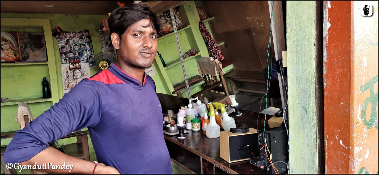 पुराने सभी नाऊओं से अलग, आज गांव में शिवाला के पास एक हाई-टेक नाऊ की दुकान देखी। उसकी दुकान के बाहर एक 200 वाट का सोलर पैनल पड़ा था। सड़क किनारे यूं ही रखा हुआ।