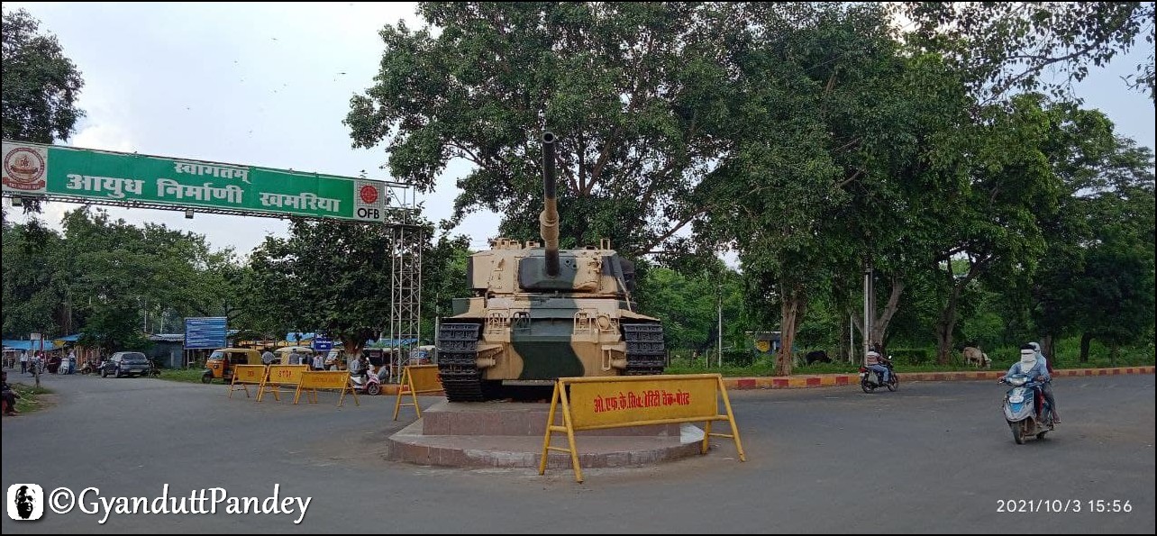 उसके पास कहीं टूरिस्ट स्पॉट है। उसके बाद शहरी इलाका प्रारम्भ हुआ। खमरिया का ऑर्डीनेंस डिपो था, जिसके सामने एक डी-कमीशण्ड टैंक रखा था शो पीस के रूप में।