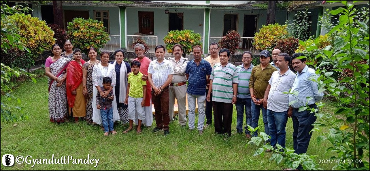 वन विभाग के लोगों के परिवारों के साथ लॉन में खड़े हैं प्रेमसागर।