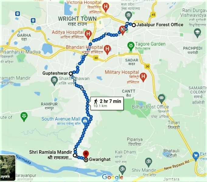 मैंने जबलपुर नहीं देखा। रात में ट्रेन से गुजरा हूं कई बार और सोते सोते निकल गया हूं। रेल के हिसाब से जबलपुर की बजाय खमरिया या कटनी का नाम ज्यादा सुनता था – माल यातायात के कोण से वे ज्यादा महत्वपूर्ण रेलवे स्टेशन या यार्ड हैं। अब, प्रेम सागर की चेलाई करते हुये गूगल मैप पर वह ट्रेस कर रहा हूं। महादेव जो न करायें, वह थोड़ा! :lol:
