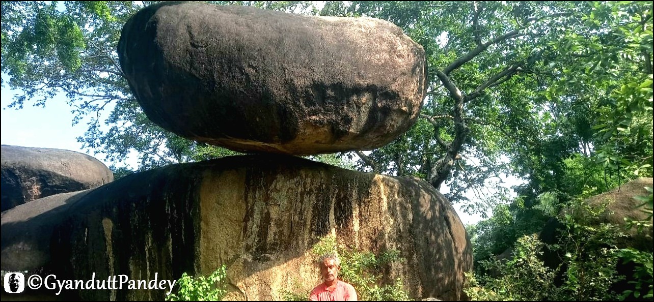 नर्मदा के भेड़ाघाट के रास्ते में पड़ते बैलेंसिंग रॉक को देख कर अचम्भित थे प्रेमसागर। “उसका आधार मुश्किल से छ इंच का होगा। इतनी बड़ी चट्टान फिर भी स्थिर है और कितने ही भूडोल आये, वह स्थिर ही रही।” उस चट्टान के सामने बैठने की एक पत्थर की बेंच है। उसपर बैठ कर और उसके आसपास से कई प्रकार से फोटो खींची हैं प्रेमसागर की आशीष जी ने।