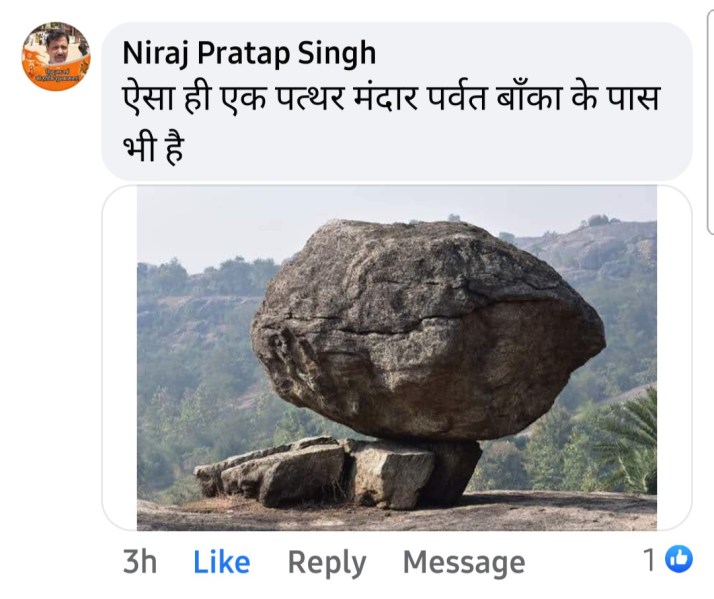 इसी प्रकार की चट्टानें और भी स्थानों पर हो सकती हैं। एक टिप्पणी इस सन्दर्भ में नीरज जी की मिली है। मैं उसका स्क्रीन शॉट ही संजो लेता हूं –