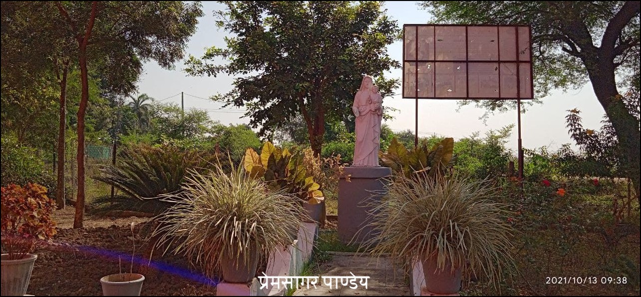 आज की प्रेमसागार की यात्रा छोटी है। कुल बीस किलोमीटर की। कुछ डी-टूर भी जोड़ लिया जाये तो 21-22 किलोमीटर होगी। वे अपना रीयल टाइम लोकेशन शेयर करने लगे हैं तो बीच बीच में मैं मैप पर झांक लेता हूं कि सीधे सपाट चल रहे हैं या नीचे उतर रहे हैं/ऊपर चढ़ रहे हैं। एक स्थान पर मुझे लगता है कि वे एक गिरजाघर के पास से गुजरने वाले हैं। मैं उन्हे आगाह करता हूं फोन पर कि वे चर्च का चित्र लेने का प्रयास करें। वे चर्च का चित्र तो नहीं भेज पाये पर वर्जिन मेरी और जीसस की मूर्ति का चित्र जरूर भेजा। एक बगीचा भी था। जिसे देख कर लगता है कि यह स्थान परित्यक्त नहीं हो गया है। गिरजा जीवंत है। रविवार को परिवार वहां जुटते होंगे। अंग्रेज चले गये बहुत जमाने पहले पर थोड़ी बहुत ईसाई आबादी आसपास बच रही होगी। या बढ़ भी रही हो?! क्या पता!