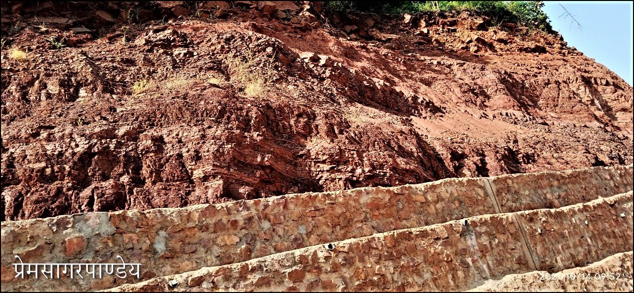 रास्ते की ऊंचाई नीचाई का अहसास तो आसपास के पहाड़ों से लग जाता है जिन्हें काट संवार कर सड़क बनाई गयी होगी। चालीस किलोमीटर से ऊपर की यात्रा में शुरुआती दौर में पहाड़ियां ज्यादा थीं, पर वे लगभग पूरी यात्रा में उपस्थित रहीं। नक्शे में देखने पर लगता है कि इस इलाके की धरती जैसे किसी भौगोलिक कारण से ठेल कर या दोनो ओर से सिकोड़ कर ऊंचे नीची कर दी हो। इस इलाके में भी सड़कें चौड़ी की जा रही हैं। इंफ्रास्ट्रक्चर विकास की कहानी इस विरल आबादी वाले रायसेन जिले में भी दिखाई देती है। पांच साल बाद कोई पदयात्री यहां से गुजरेगा तो उसे दृश्य बदला हुआ नजर आयेगा।