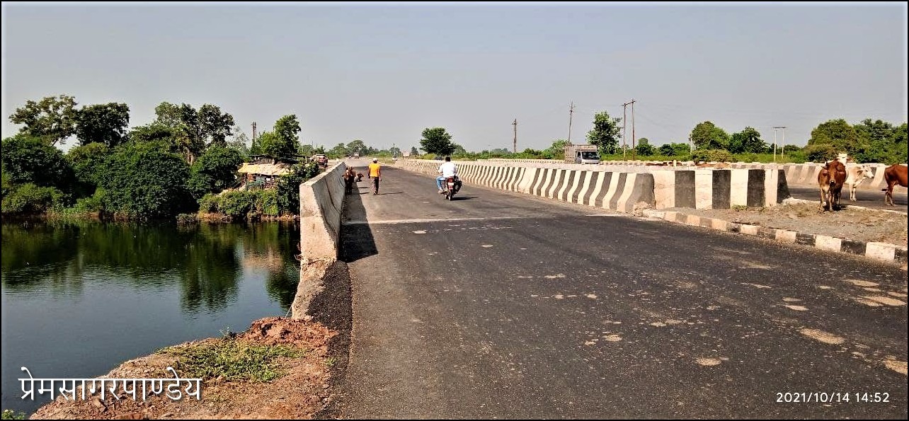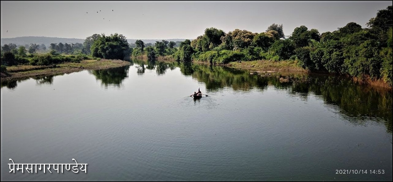 आज रास्ते में जल, पहाड़ियां, घाटियां और हरियाली थी। जहां भी खेत बन सकते थे, वहां धान की खेती हो रही थी। शुरुआत की आधी दूरी तो बरना जलाशय के इर्दगिर्द वाले इलाके में चलते गुजरी। कहीं नहर मिली तो कहीं नदी। दो नदियां – कम से कम – प्रेमसागर ने पार कीं। उनमें से एक तो बरना रही होंगी जो बरना जलाशय की मुख्य नदी हैं। वे जलाशय में आ कर मिलती भी हैं और आगे जलाशय से निकलती भी हैं। अंतत: उनका गंतव्य नर्मदा ही हैं। टेढ़े मेढ़े घूमते वे उतनी दूरी तय करती हैं, जितनी प्रेमसागर करीब तीन दिनों में तय करते हैं। पर उनके किनारे किनारे चलना हो तो शायद एक पखवाड़ा लगे। उनके किनारे किनारे गांव भी कम ही होंगे और मार्ग तो होंगे ही नहीं। बरना; जो पुराणों में शायद वरुणा-नर्मदा हैं; के किनारे चलने की कोई परम्परा तो है नहीं। शायद कोई चला भी न हो। बहरहाल, चित्र में नदी सुंदर लगती हैं।