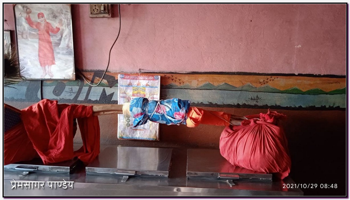सवेरे चोरल से निकले तो बहुत प्रसन्न रहे होंगे। निकले थोड़ा देर से। सूर्योदय के बाद। जंगल में अंधेरे में निकलना उचित नहीं समझा होगा। उनसे पौने 9 बजे बात हुई। एक स्थान पर वे चाय की दुकान पर ऊंचे स्थान पर अपनी कांवर रख रहे थे चाय पीने के लिये। उसके पहले निकलते हुये रेस्ट हाउस और मुख्त्यारा-बलवाड़ा स्टेशन के पहले लेवल क्रासिंग के चित्र भेजे थे।