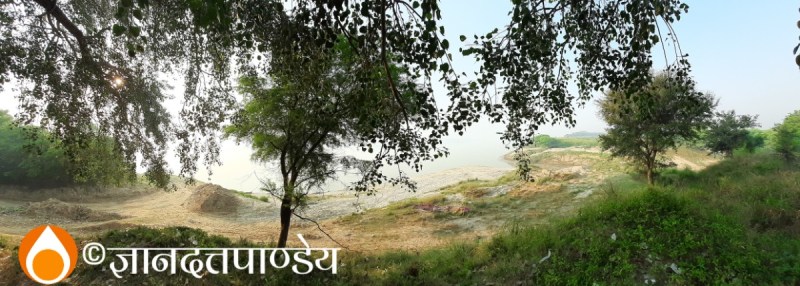 खराब सड़क और सवेरे की गुनगुनी ठण्डी हवा को चीरते हुये करीब आठ किलोमीटर साइकिल चला कर गंगा किनारे पंहुचा तो मायूसी हुई। पूरा घाट खाली था। एक भी नाव नहीं। कोई मछेरा नहीं। कोई मछली खरीदने वाले नहीं। गंगाजी में पानी बहुत था। पर मछली पकड़ने और खरीद फरोख्त का कारोबार शांत था।
