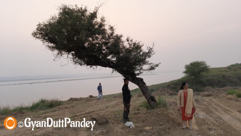 वह गंगा का ऊसर किनारा, जिसमें करारी कंकर हैं, गंगा के बाढ़ के पानी से बना एक तालाब है, इक्का दुक्का घूमते नीलगाय हैं और नीरव शांति है; वह मेरे नित्य सवेरे घूमने का नया जुनून है। मेरे घर से टेढ़े मेढ़े रास्ते से वह करीब छ किलोमीटर दूर पड़ता है। रास्ते में जो भी दिखता है और जो भी अनुभूतियां होती हैं वो मन में बहती चली जाती हैं। उन्हें बाद में बैठ कर कागजबद्ध किया जाये तो अनूठी चीज बने। पर वे सब बहुत तरल होती हैं। लेकिन, मैं कभी कभी सोचता हूं कि कागज (या कीबोर्ड) बद्ध करना महत्वपूर्ण नहीं है, महत्वपूर्ण है अनुभूतियों को जीना। वह मैं कर रहा हूं। और उसमें आनंद है!