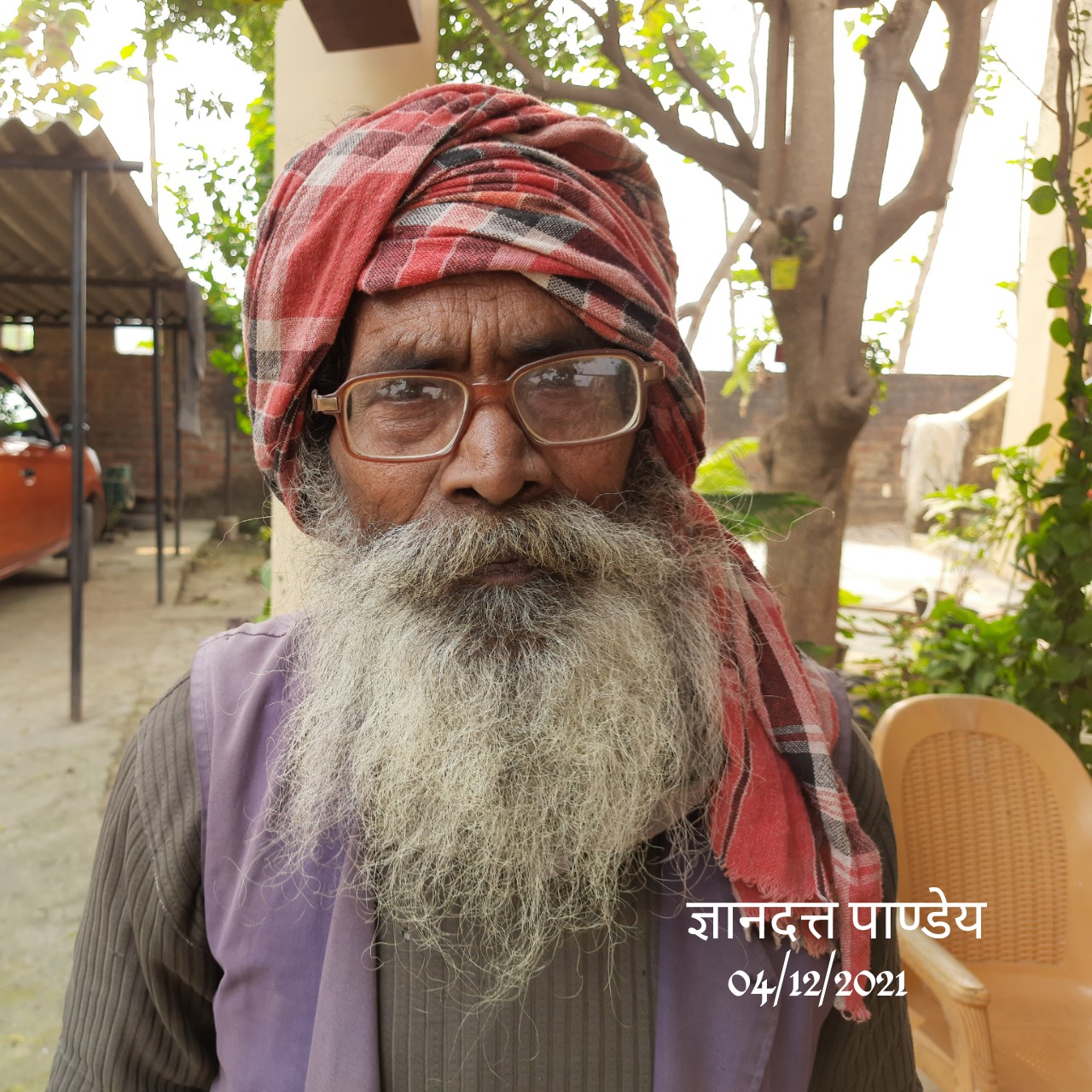उम्रदराज थे गुक्खल पर बहुत तेजी से तीन किलोमीटर दूर मेरे घर पंहुच गये। शक्ल ध्यान से देख मुझे लगा कि ब्लॉग लेखन के लिये एक सही पात्र हैं। उन्हें पीने मे लिये मीठा-पानी दिया। मैंने देखा कि हमारी ग्लास से उन्होने अपनी सगड़ी के नीचे लटकाई थैली में से अपनी ग्लास और पानी की बोतल निकाल कर पहले हाथ मुंह धो कुल्ला किया। उसके बाद अपनी ग्लास धो उसी में पानी उंड़ेल कर पिया।