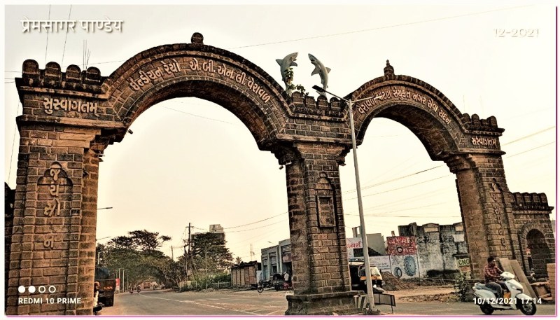 शाम सवा पांच बजे वे वेरावल की सीमा में प्रवेश किये। उसके बाद लोगों से पूछते पूछते सोमनाथ की ओर बढ़े। कोई शॉर्टकट लेने के फेर में थोड़ा भटके भी। मैंने घण्टा भर बाद पूछा तो उन्होने कहा कि रास्ता सूझ नहीं रहा है। अंधेरा हो गया है और जंगल जैसा लग रहा है। लोगों ने इस रास्ते की बजाय सड़क मार्ग से जाने को कहा है।