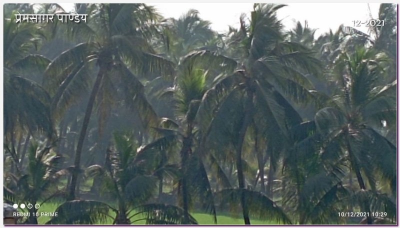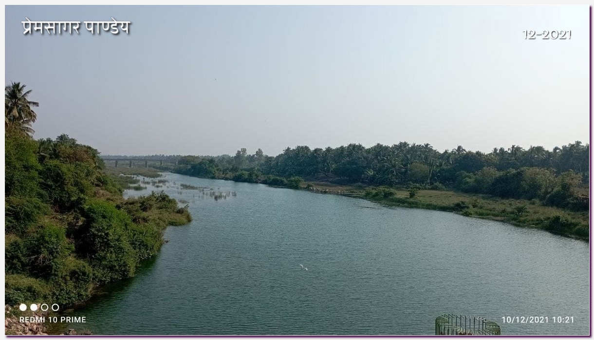 दिन की यात्रा के कई चित्र हैं प्रेमसागर के। जैसे जैसे वे अरबसागर के तट की ओर बढ़े वैसे वैसे नारियल और ताड़ के वृक्ष दीखने लगे। नारियल की खेती होती भी नजर आयी। नदी का चित्र है। नक्शे में वह व्रजिमी दिखती है। जल पर्याप्त है नदी में। कुछ ही किलोमीटर के बाद वेरावल के पश्चिम में वह अरब सागार में जा कर मिलती है।