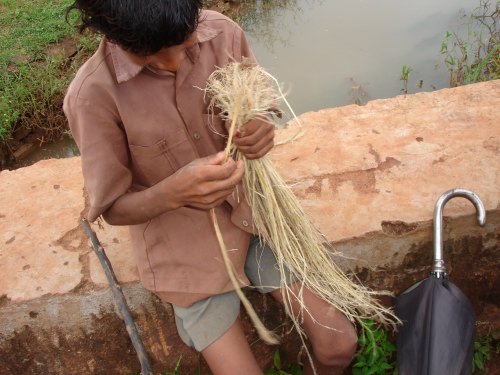 पहली बार मुझे पता चला कि पलाश या छिउल की जड़ों के रेशे की रस्सी भी बनती है। मजबूत रस्सी। पलाश का हर अंग उपयोगी है। इसके दण्ड को ले कर ही बटुक का यज्ञोपवीत होता है। इसके पत्ते, फूल, फल, छाला – सब का ग्रामीण और वनवासी प्रयोग करते हैं। महुआ की तरह इसका सब कुछ उपयोगी है; पर यह महुआ की तुलना में कहीं अधिक शुभ और पवित्र वृक्ष माना जाता है। विकीपेडिया पर मुझे यह जानकारी मिली कि इसकी जड़ के रेशे से रस्सियां बुनी जाती हैं।