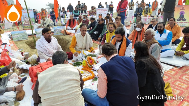 अंदर गंगा किनारे भूमि पूजन का कार्यक्रम चल रहा था। वहां ओझा जी से मुलाकात हुई। उन्होने बड़े स्नेह-आदर से स्वागत किया। वहां बड़ा समारोह था। कई सौ लोग थे। परिसर बहुत विस्तृत है इसलिये सोशल डिस्टेंसिंग की समस्या नहीं थी। अच्छा लगा वहां। पर मन में सिक्यूरिटी वाले द्वारा टोके जाने की किरकिरी तो रही ही।