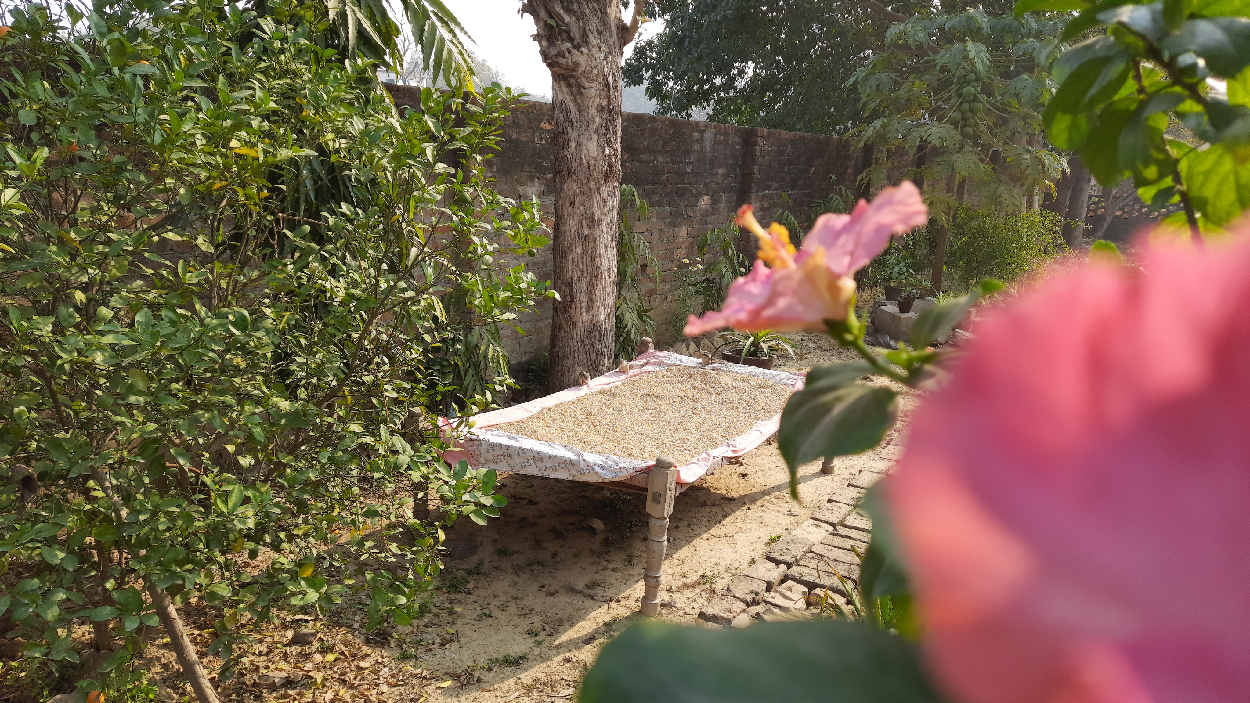 गेंहू धो कर सुखाने में खाट पर चढ़ कर सभी जीव अपना हिस्सा ले लेते हैं। पर गिलहरी ज्यादा ही ढीठ है। वह जितना खाती है, उससे ज्यादा खटिया से जमीन पर गिरा कर बरबाद करती है। एक बार में दर्जन भर गिलहरियों को गेंहू पर हमला करते देखा है। उन जीवों के लिये दिन में दो तीन बार अन्न डाला जाता है। पर इस गेंहूं को खाने-बरबाद करने में जाने क्या मजा आता है उन्हें।