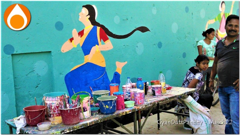 लक्ष्मीकांत की स्कूल की दीवार पेण्टिंग अच्छी थी। बहुत अच्छी नहीं। प्रयागराज में ‘पेण्ट माई सिटी‘ अभियान के दौरान जो पेण्टिंग हुई थी, वह स्तर तो नहीं ही है। वह स्तर होता तो मैं लक्ष्मीकांत से अपने घर की बाहर की दीवार पर कोई पेण्टिंग बनाने के लिये बात करता। लक्ष्मीकांत को ग्रेड देनी हो तो C++ दूंगा। उनकी पेण्टिंग में लेयर्स कम हैं। चित्र कार्टून चरित्रों जैसे लगते हैं। लैण्डस्केप भी दो विमा वाले ( Two Dimensional) हैं। प्रयाग के वाल पेण्टिंग त्रैविम का आभास देते हैं।