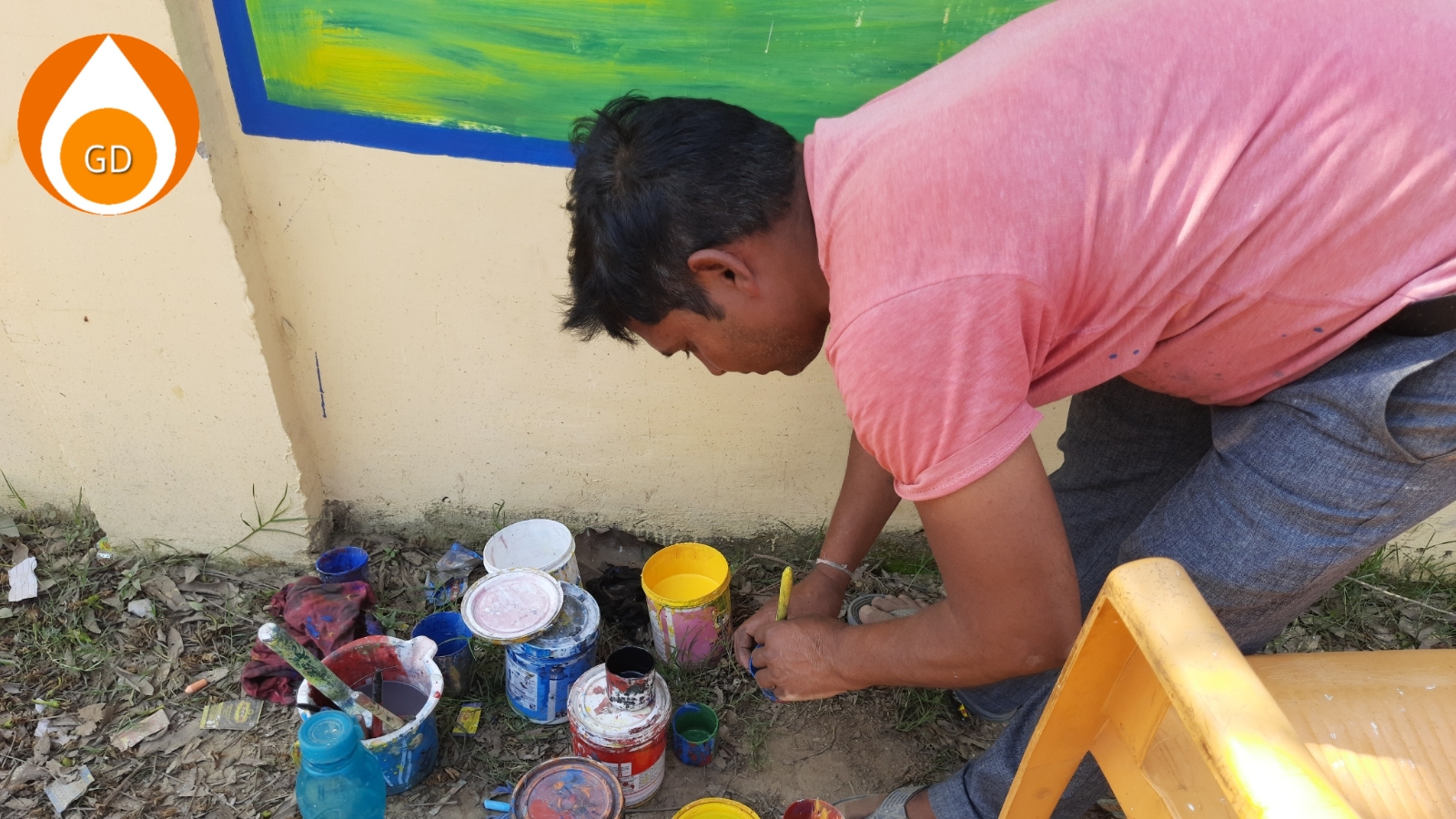 कल देखा कि चारदीवारी पर एक पेण्टर पेण्ट कर रहा है। उनसे बात करने लगा मैं। नाम है लक्ष्मीकांत। घोसियाँ के रहने वाले हैं। ड्राइंग-पेण्टिग की शिक्षा पाये हैं। दुकानों, दीवारों, इश्तिहारों की पेण्टिंग करते हैं। अब स्कूल की दीवारें ब्यूटीफाई करने का काम कर रहे हैं। दिन भर काम करते हैं और उसके बाद पढ़ाई करते हैं। स्कूल में टीचर बनना है उन्हें। ड्राइंग टीचर।