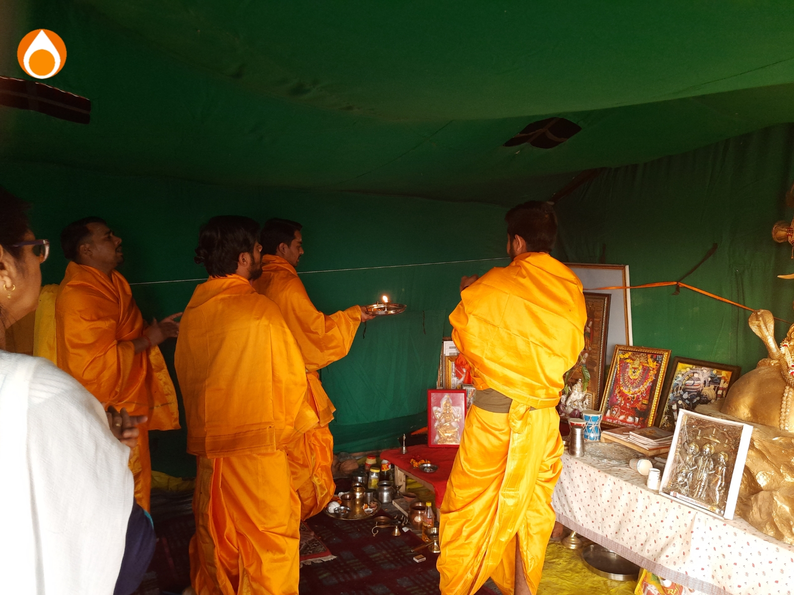 अन्नपूर्णा मंदिर में आरती सम्पन्न कर वेदपाठी टीम महुआ के वृक्षों के नीचे स्थापित गोपाल कृष्ण की प्रतिमा की ओर बढ़ी।