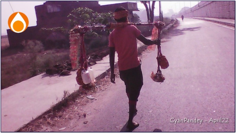 न साव जी ने और न राजकुमार जी ने अपनी कांवर यात्रा को चैत्र नवरात्रि से जोड़ा। वे तो इस कारण चल रहे हैं कि उनके गुरू जी दण्ड दे रहे हैं। “गुरू जी आगे हैं। उनकी दण्ड यात्रा करीब बारह चौदह किलोमीटर बची है।” सम्भवत: इन लोगों की पैदल कांवर यात्रा और गुरू जी की दण्ड यात्रा बाबा विश्वनाथ पंहुचने में सिन्क्रोनाइज हो जायेगी – ये लोग वाराणसी से अभी 40 किमी दूर हैं। तालमेल से ये लोग पीछे चल रहे हैं।