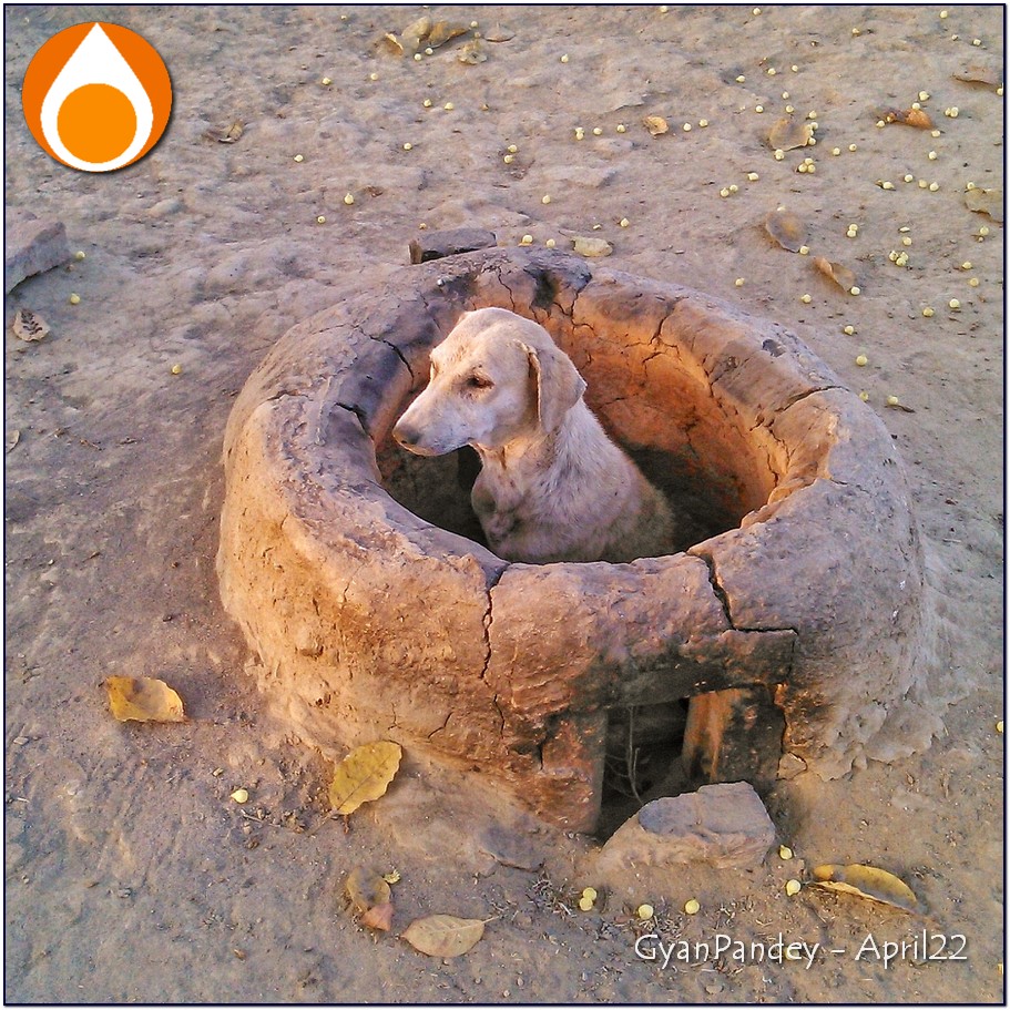 हां, भरसांय की याद आने पर मुझे अपना पुराना खींचा चित्र याद आया जिसमें एक कुकुर भरसांय में सवेरे बैठा था। यही मौसम जब महुआ टपक रहा था। कुकुर एक अंतरिक्ष यान में बैठा एस्ट्रोनॉट सरीखा लग रहा था।
