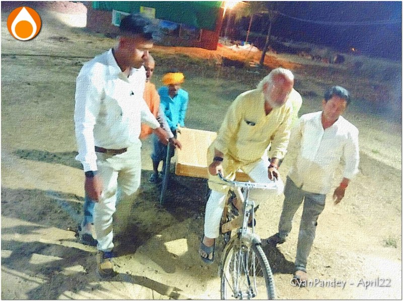कुटिया के पास नयी सगड़ी दिखी। हीरालाल ने बताया कि चार रोज पहले आई थी कछवाँ से। “बाबू जी चलावत रहें। बहुत मस्त फोटो आई रही। आपऊ देखे होब्यअ। (बाबूजी – सुनील भाई चला रहे थे। बहुत शानदार फोटो आई थी। आपने भी देखी होगी।)”