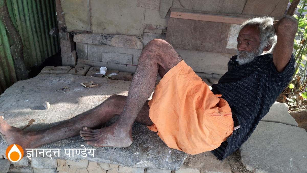 वह बुदबुदाता ही रहा। मेरी ओर मात्र एक नजर निहारा था। उसके बाद ऊपर की ओर तिरछे मुंह कर कुछ अस्पष्ट कहता रहा। मैंने उसके मुंह के पास अपना कान लगा कर सुनने का प्रयास किया। पर आवाज साफ नहीं थी। यह जरूर लगा कि वह हिंदी में कुछ कह रहा था। उसने उठने, बैठने या मुझसे बात करने का कोई संकेत नहीं दिया। वह अपने आप में रमा हुआ था।