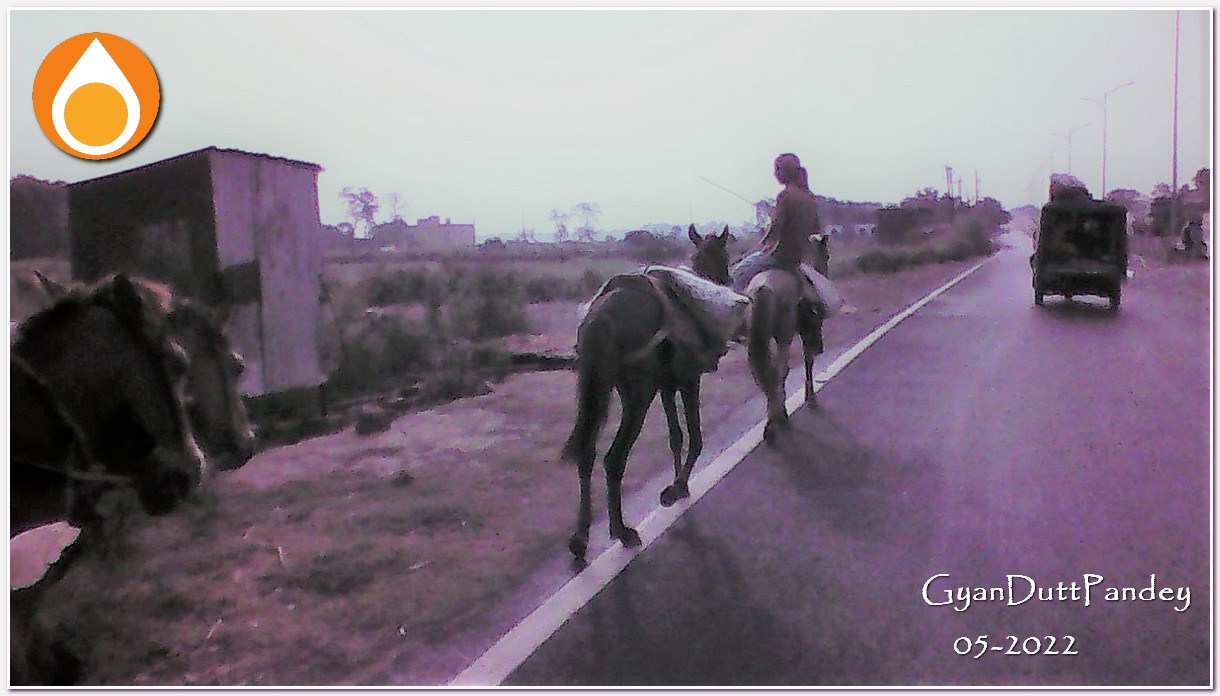 तेज रफ्तार से टट्टू का काफिला चलता चला गया। स्पीड करीब 15-20 किमी प्रति घण्टा की रही होगी। उसे पीछे से देखते यह मन में आया कि भारत भ्रमण के लिये एक या दो टट्टू ले कर सवारी करते हुये चलना भी एक मोड ऑफ ट्रांसपोर्ट हो सकता है। भारत के मैदानी ही नहीं, पठारी या पहाड़ी इलाके में भी उसकी सवारी मजे से की जा सकती है। पढ़ा भी है कि ह्वेनत्सांग और फाहियान अपने साथ बीस खच्चरों पर पुस्तकें लाद कर लम्बी भारत यात्रा किये थे। अब आधुनिक काल में पुस्तकें तो क्लाउड या किण्डल में समेटी जा सकती हैं, पर यात्रा के लिये – वह भी पूरा गहन अनुभव लेते हुये – टट्टू की सवारी बहुत सही रहेगी। दुर्घटना की आशंका भी कम।