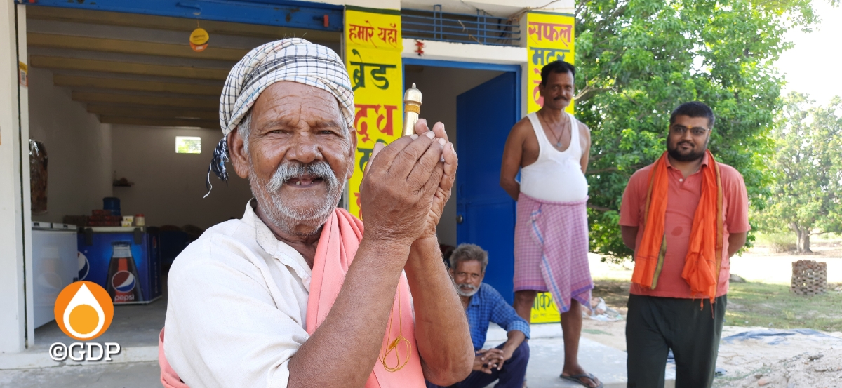 टिल्लू की दुकान के सामने मजमा लगा रखा था शिवशंकर दुबे ने। वे उमरहाँ के हैं। बातूनी। गंगा स्नान करने जाते हैं। रोज नहीं; कभी कभी नागा हो जाता है। मुझे देख अनवरत बोलने लगे। उनके गले से उलटे जनेऊ की तरह एक छोटी सी पीतल की शीशी लटकी थी। बताया कि उनके पिताजी की देन है। वे चार धाम की यात्रा करते समय इसे साथ ले गये थे और इसी में गंगोत्री का जल लाये थे। पिता की चिन्हारी के रूप में बंटवारे में यह उन्होने चुनी।