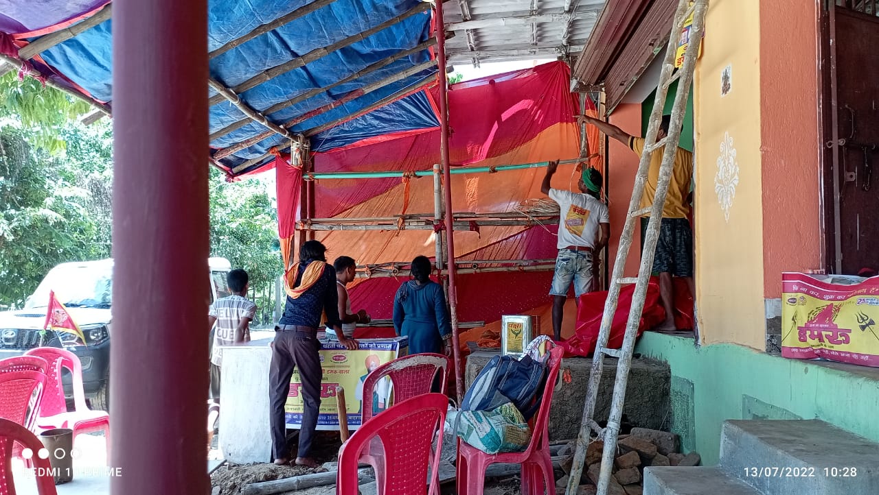 मार्ग में दुकानदार सावन के मेले के लिये अपनी दुकानें लगाने में व्यस्त दिखे। मार्ग पर बालू बिछा दिया गया है। उसपर पानी नहीं डाला गया। बालू गर्म हो जाने से चलने में दिक्कत हो रही है। मौसम भी गर्म और उमस वाला है।