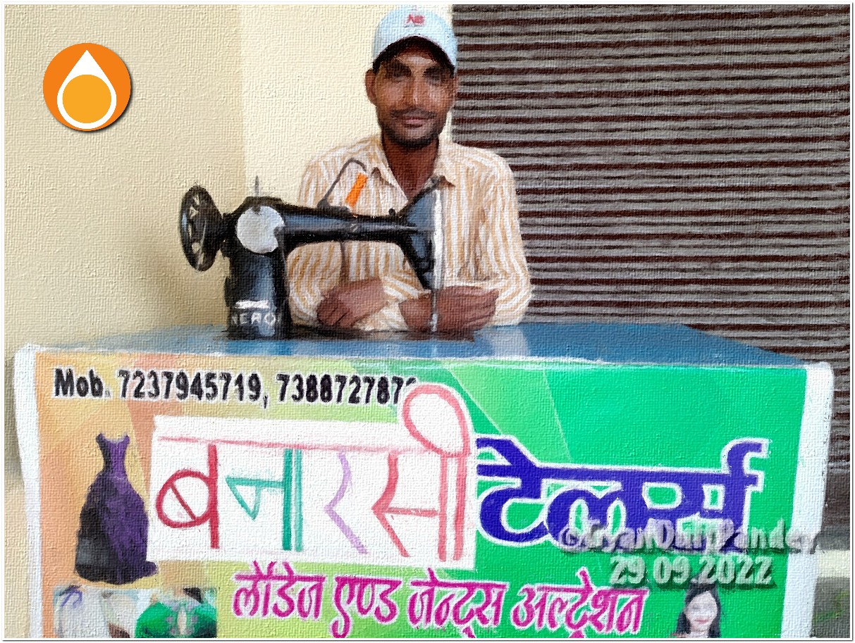 आजम की मेज पर उसकी फ्लैसी शीट में लिखा है – बनारसी टेलर्स – लेडीज एण्ड जेण्ट्स अल्ट्रेशन। अर्थात पुराने कपड़ों में काट छांट कर उन्हे ठीक करने का काम आजम करते हैं।