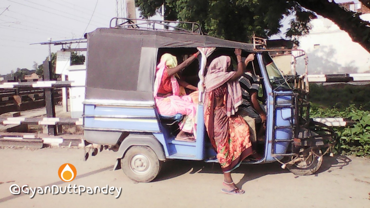 आठों महिलायें ऑटो में बैठ गयीं। ऑटो वाले के अगल बगल 2-2 (कुल चार) और पीछे सीट पर जिसमें दो पेसेंजर बिठाने का नियम है, उसमें चार। दौड़ कर आती बालिका इसी जगह में कहीं ससक कर बैठेगी।