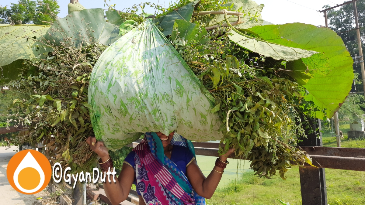 पेड़ों की कोई भी चीज बेकार नहीं जाती। लोग उन्हें उठाने, काटने, बीनने के लिये सदैव तत्पर रहते हैं। इस मौसम में पत्ते नहीं झर रहे, तो यह भुंजईन जहां भी मिल रहा है, हरे पत्ते भी बीन कर संग्रह कर रही है।