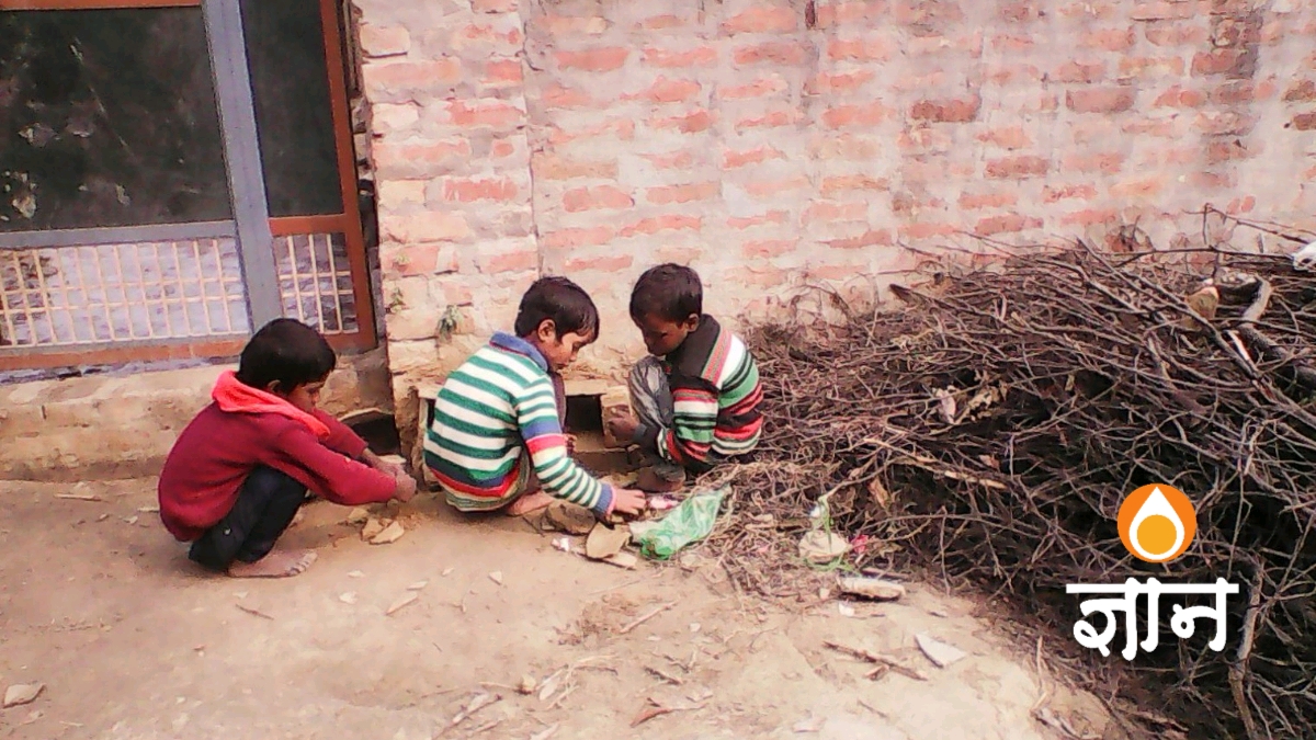 बगल के घर के बाहर कुछ बच्चे घर बना रहे थे। मैं उन्हें पहचानता हूं। उनमें से वे बच्चे हैं जिन्हें सागौन के सूखे पत्ते बीनते देखा था। अब वे दो कमरे बना चुके हैं। कुछ दूर हट कर एक और कमरा बना है। शायद वह शौचालय हो। गांव में शौचालय अलग से, थोड़ा हट कर बनता है। कमरों में दरवाजा नहीं है। पतले शीट से वे दरवाजा बनाने की कोशिश कर रहे हैं, पर बिना कब्जे के दरवाजा टिकता नहीं। फिर भी खेलने के लिये वह सब काफी रोचक है।