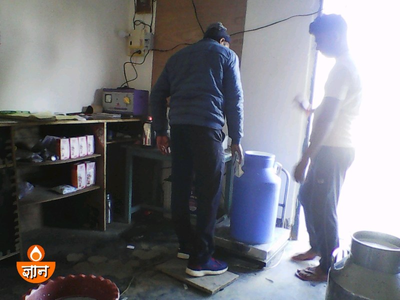 तितराही वाली मड़ैयाँ डेयरी मेरे घर से डेढ़ किमी दूर है। नेशनल हाईवे पर ही उसका बोर्ड दिखता है। मैं वहां गया तो वहां के कर्ताधर्ता अजय पटेल मिले। डेयरी पर बाहर बोर्ड पर समय लिखा है सवेरे 8 से 11 बजे तक। अजय ने मुझे बताया कि वे साढ़े छ बजे आते हैं सेण्टर खोलने। पास के पठखौली गांव में रहते हैं। पच्चीस दिन पहले खुली है उनकी डेयरी। दूध ले कर वे कपसेटी के अपने प्लांट में भेजते हैं। वहां पनीर, छेना, पेड़ा आदि बनाया जाता है। शादी-विवाह में सप्लाई भी होता है और बचा दूध पराग-अमूल आदि व्यवसायिक संस्थानों को बेचा जाता है। कपसेटी में उनकी खुद की जरूरत 10 हजार लीटर की है।
