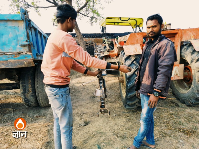 साइकिल से घूमते हुये तीन किमी दूर लसमणा गांव के पास ईंट के खड़ंजा के रास्ते का डामर वाली सड़क में रूपांतरण और उसके किनारे पानी की पाइप बिछाने का काम होते पाया। अच्छी, चौड़ी सड़क बन रही है। उसके साइड में खाई खोद कर पाइप डालने वाले भी काम कर रहे हैं। सवेरे आठ बजे से रात आठ बजे तक उनका काम होता है। ग्रामसभा की एक जगह पर पाइप के बण्डल मुझे नजर आये। कुछ ट्रेक्टर और अन्य वाहन भी थे। एक ट्रेक्टर में खाई खोदने की मशीन – ट्रेंचर – का अटैचमेण्ट भी दिखा। दो लोग उस ट्रेंचर के दांते ठीक कर रहे थे और तीसरा आदमी नीम की दातुन कर रहा था। उन लोगों में से दो तो स्थानीय थे, एक दातुन करने वाला सोनभद्र से आया है। बारह घण्टे की शिफ्ट में वे ट्रेंचर से खाई खोद कर सड़क के किनारे जल निगम के पाइप बिछा रहे हैं।