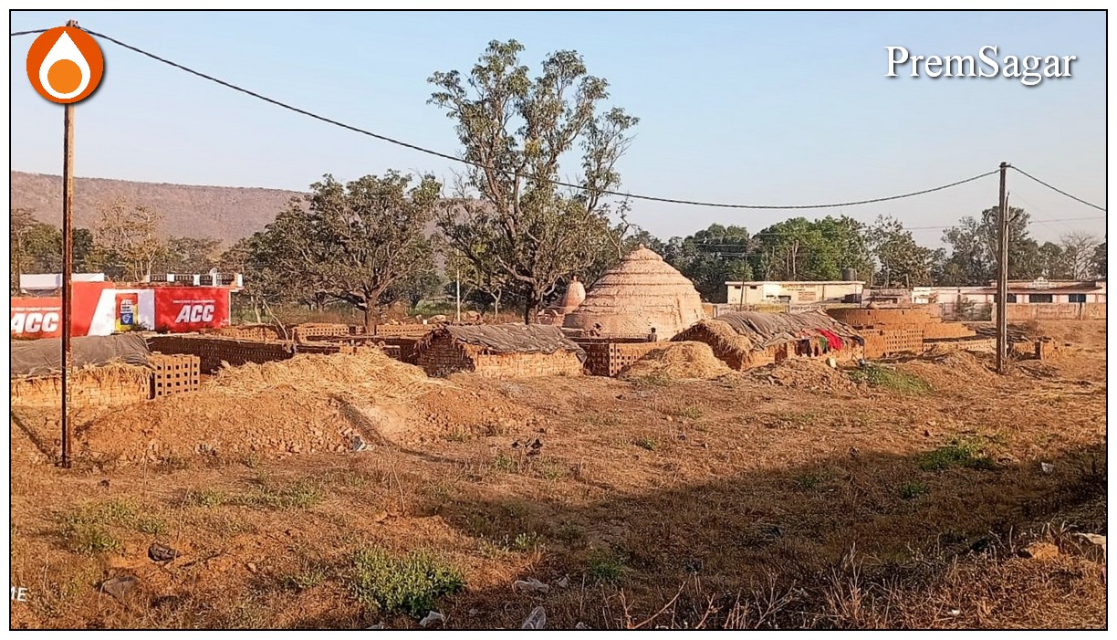 रास्ते में ईंट भट्ठा के कुछ चित्र खींचे प्रेमसागर ने। मध्यप्रदेश में आबादी सघन नहीं है। इसलिये ईंट पकाने की आग के धुयें के उत्सर्जन के लिये बड़ी मीनार जैसी चिमनी वहां नहीं दीखती। कच्ची ईंटों के एक स्तूप नुमा ढेर में बीच में कोयले से आग लगाई जाती है। इस विधा में खर्चा कम आता होगा पर धुआं धरती के आसपास ही रह जाता है।