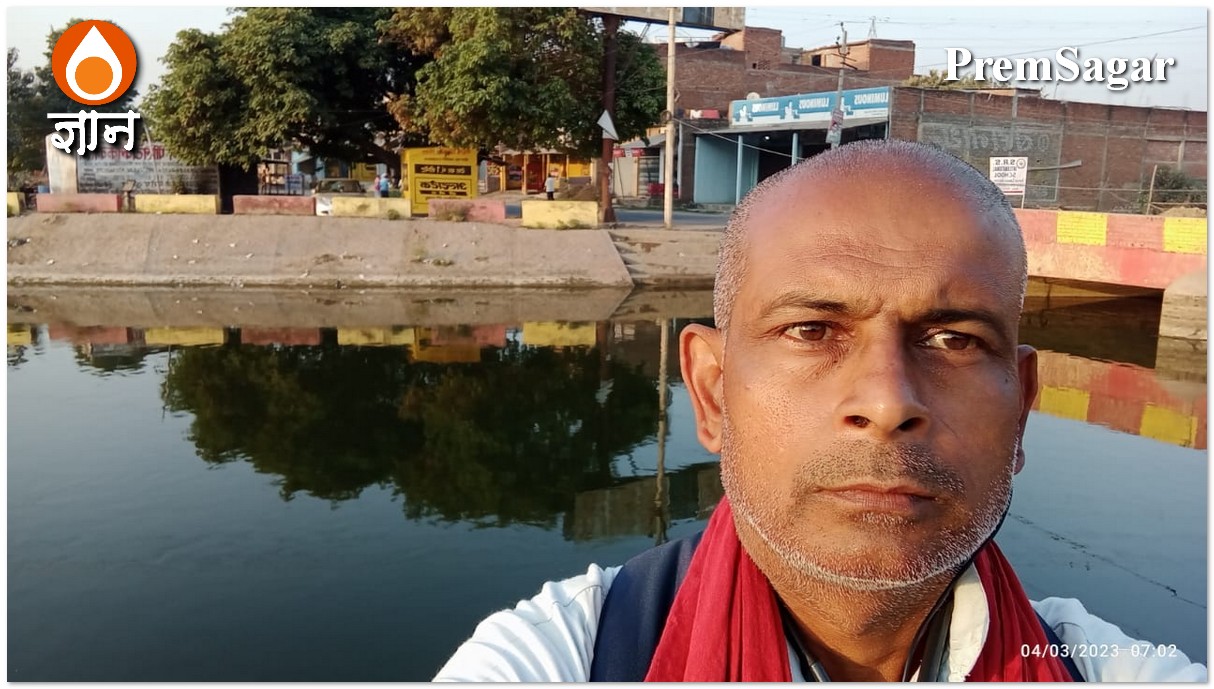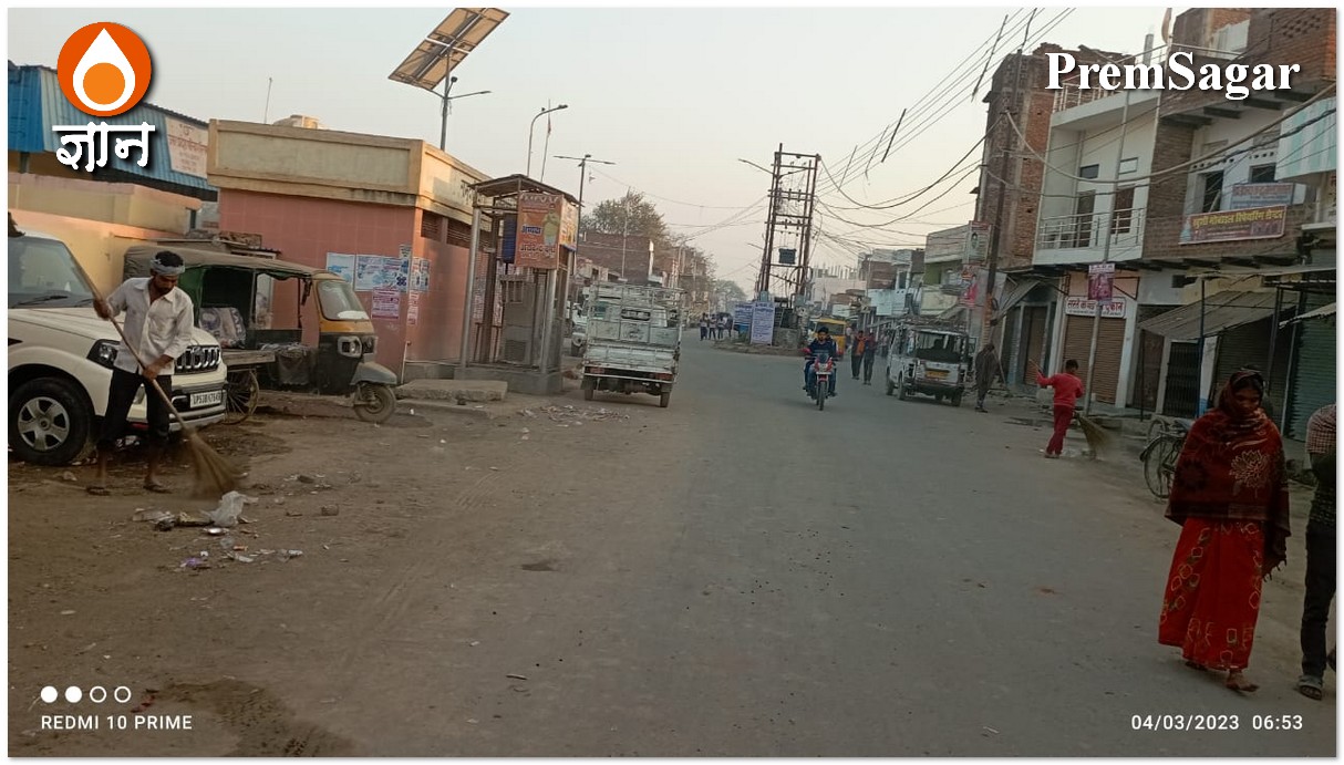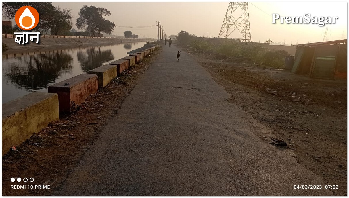 कल यात्रा रोक कर अपने लिये रात में रुकने का डेरा ढूंढने प्रेमसागर जमानिया आये थे किसी वाहन से। आज सवेरे जमानिया के लॉज से पीछे जा कर वापस पैदल लौटने का कृत्य किया होगा। फिर उस स्थान से पैदल वापस आ, सामान ले कर सात बजे लॉज से निकले। सवेरे की रोशनी में उन्होने कुछ चित्र जमानिया के भेजे हैं। कस्बे के पास कोई नहर जाती है। उसके बैकग्राउण्ड में सेल्फी। नहर की बगल से सड़क का दृश्य। सवेरे की चहल पहल और सड़क सफाई करते कर्मचारी।