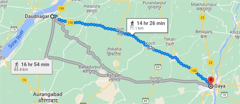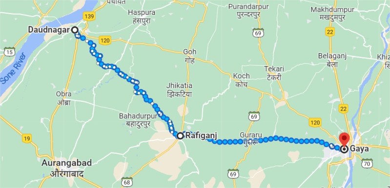 गूगल मैप था या प्रेमसागर की पगडण्डी के रास्ते चल कर शॉर्टकट तलाशने की प्रवृत्ति; कह नहीं सकते। दाऊदनगर से बरास्ते गोह सीधा साट रास्ता था गया का। मैप के हिसाब से 71 किमी। प्रेमसागर पगडण्डी पकड़ कर चल दिये। कोई प्वाइण्ट पगडण्डी पर आया होगा कि गूगल उन्हें गोह होते सीधे रास्ते की बजाय रफीगंज की ओर जाने को दिखाने लगा।