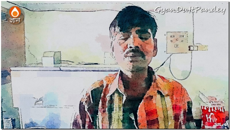 ऐसे चरित्र रोज रोज नहीं मिलते। पहले मुझे लगा कि वह कुछ मानसिक रूप से सरका हुआ है। पर उसने बताया कि गांव के आसपास के भगत लोगों के साथ उत्तराखण्ड, झारखण्ड, गया आदि कई जगहों पर पैदल यात्रा कर चुका है। भगत लोग अपने साथ उसे सामान ले कर चलने या छोटा मोटा काम करने के लिये साथ ले कर जाते हैं। कुल मिला कर उनका कुली होता है वह। … मैं अगर (और यह शेखचिल्ली सोच है) साइकिल से भारत भ्रमण पर निकलूं तो साथ में इस जोकर को बतौर कुली एक साथ की साइकिल पर ले कर चल सकता हूं। मैंने सोचा!